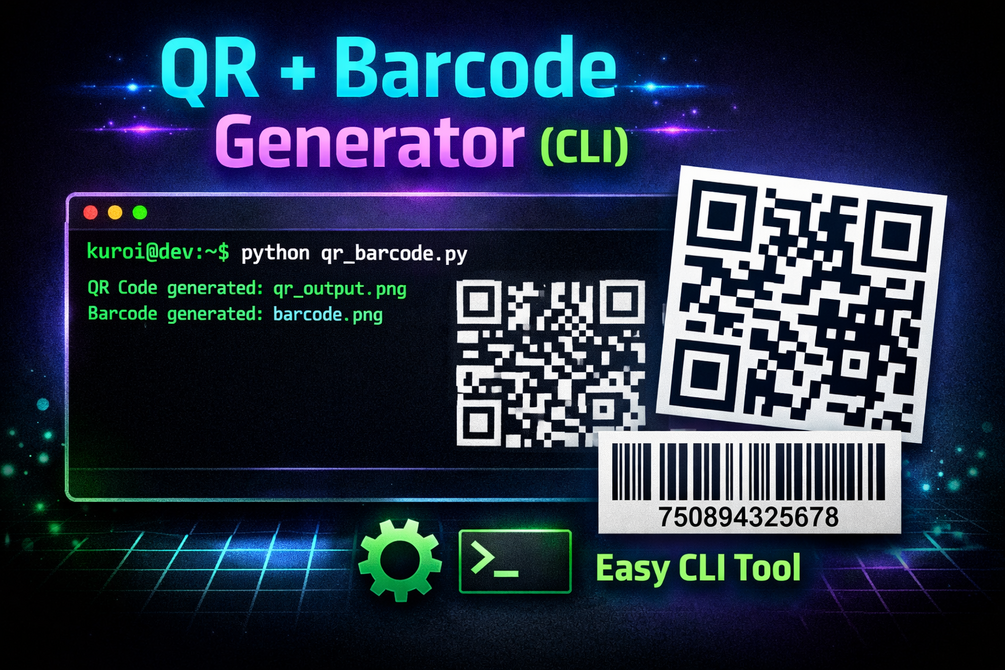 A lightweight Python CLI tool to generate QR codes and barcodes in seconds.